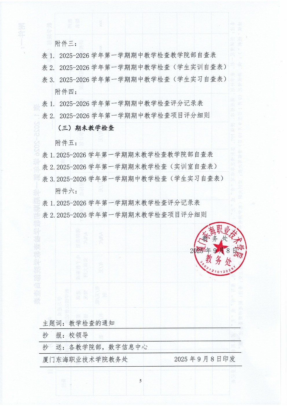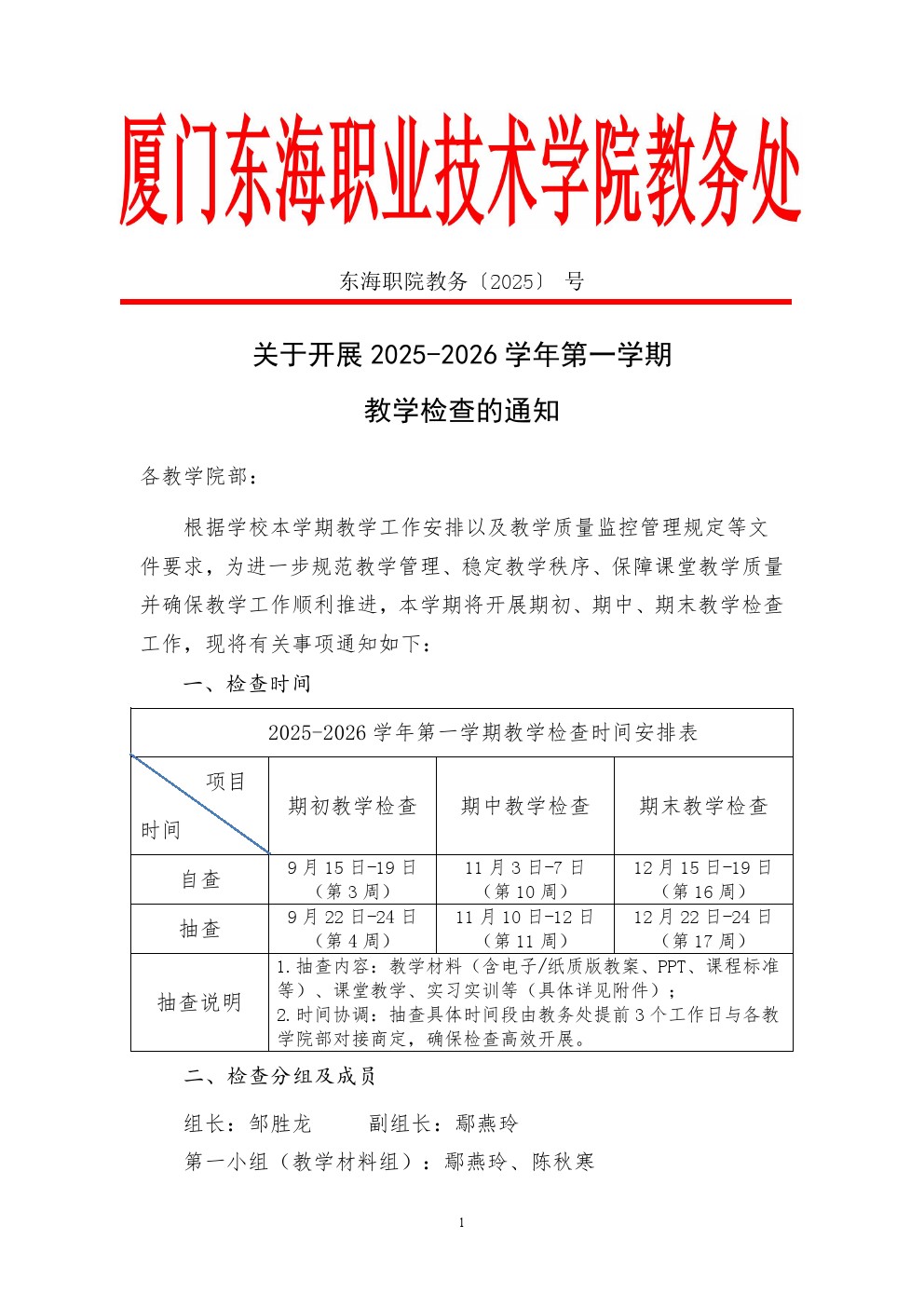 东海职院教务〔2025〕40号 关于开展2025-2026学年第一学期教学检查的通知