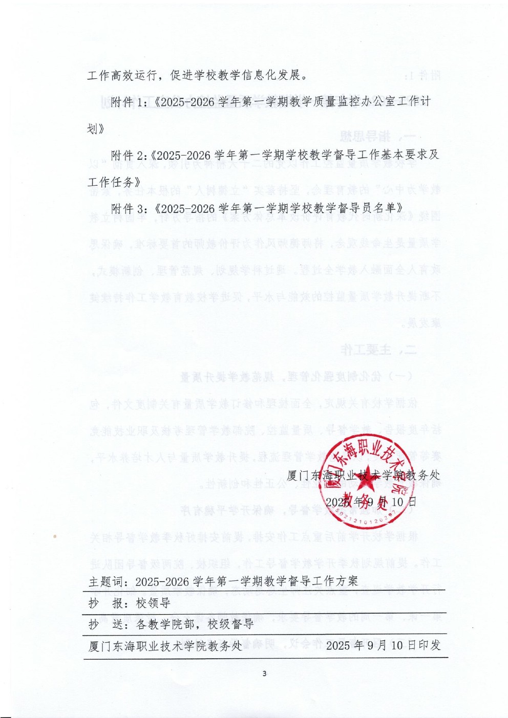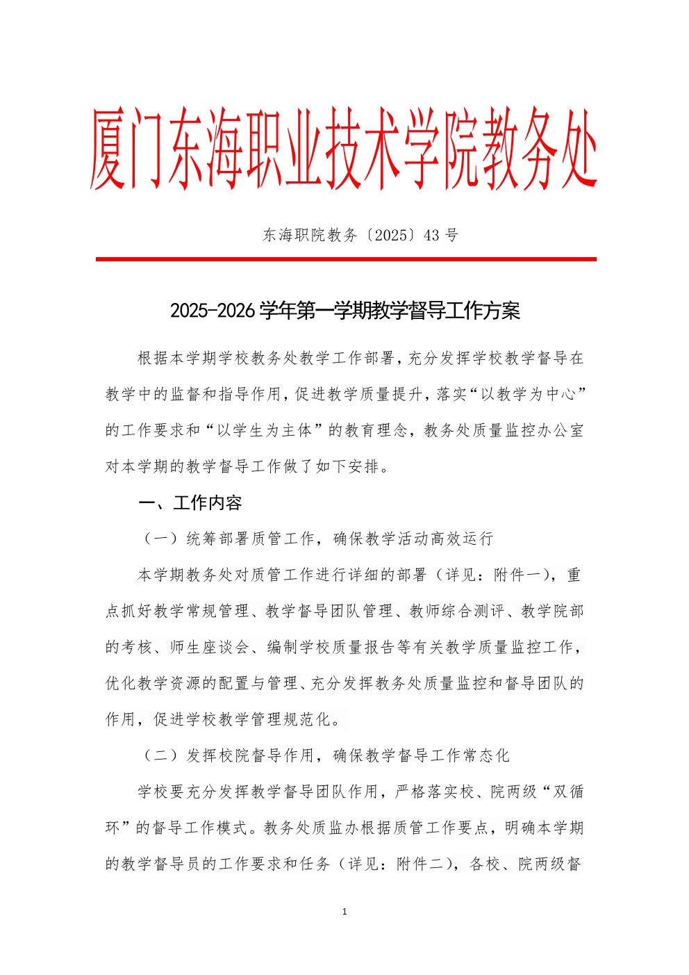 东海职院教务〔2025〕43号2025-2026学年第一学期教学督导工作方案
